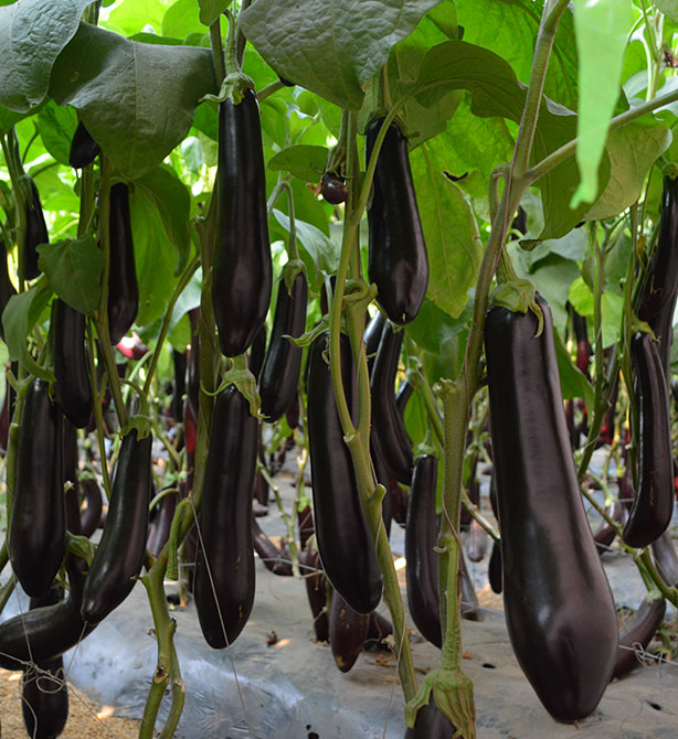 绿裤紫气茄,植株长势旺盛,开展度大,花萼中等大小,叶片中等大小,萼片无刺,丰产性好,生长速度快,采收期长,果实长形,果长25-35厘米,直径6-8厘米,单国重400-450克,颜色紫黑,表皮油亮光滑,适合秋冬和早春保护地栽培。